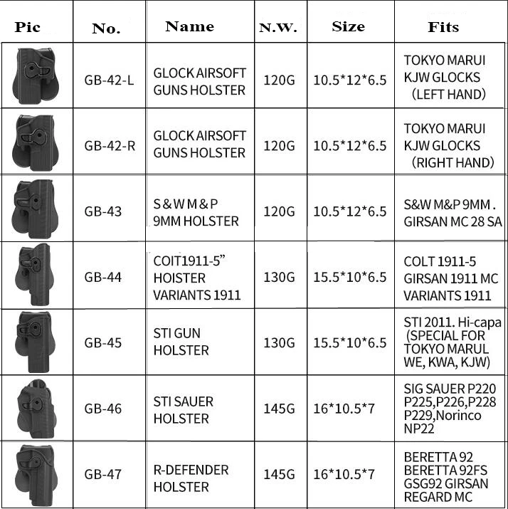 Por favor, consulte su tipo de pistola para elegir la funda: