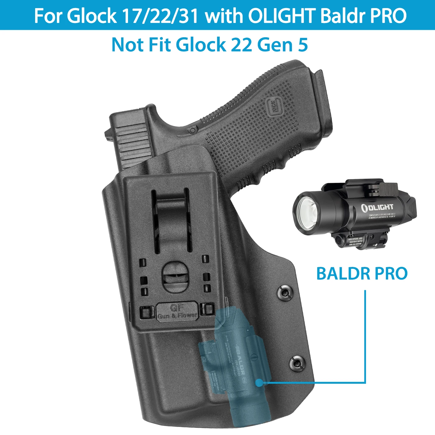 Glock 17/19 Gen 3-5 y Glock 19X/44/45 con Olight Baldr Pro/Baldr Pro R/Valkyrie PL Pro/Valkyrie Turbo