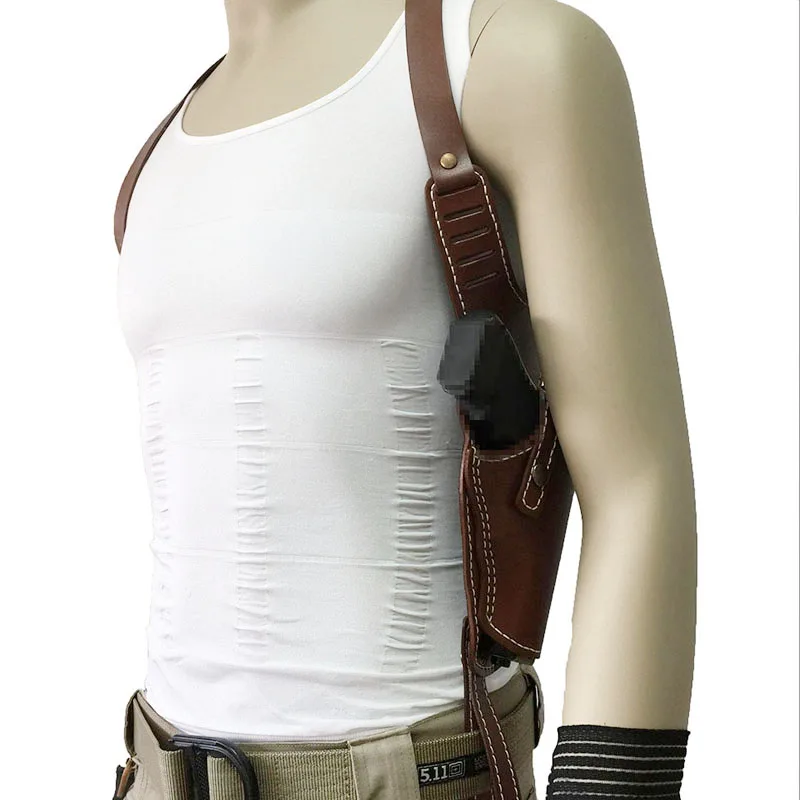 Funda de piel de vaca para hombro, axila, axila, oculta, para pistola, se adapta a pistolas de automóvil de marco medio para mano derecha
