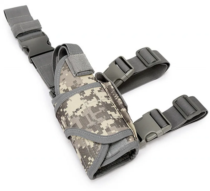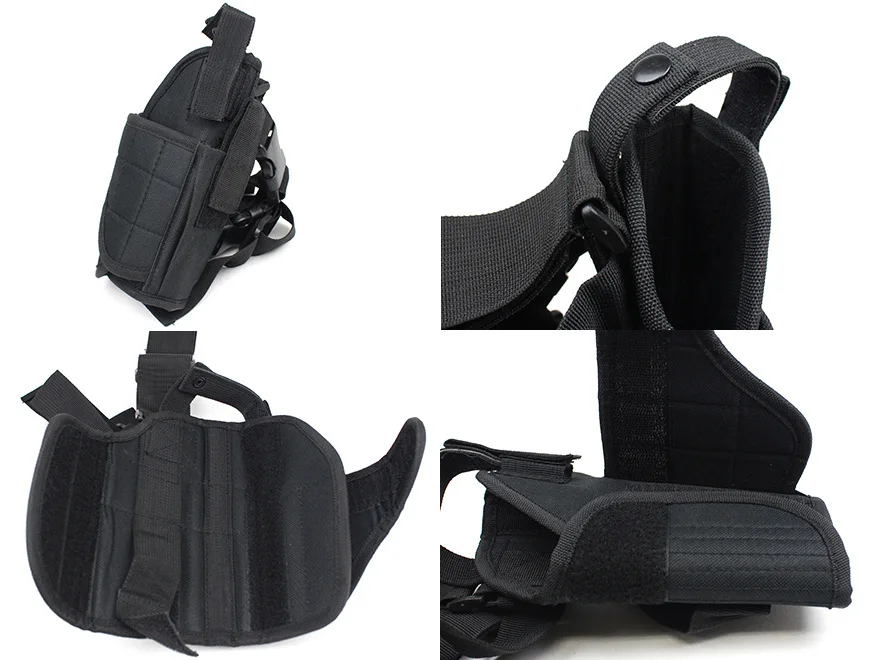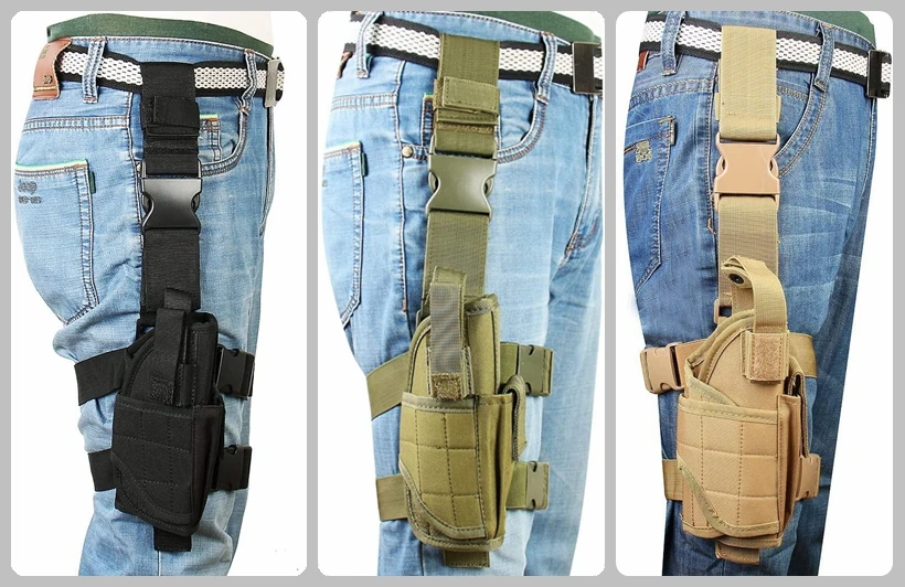 Funda táctica para muslo, diseño envolvente con correa ajustable, generalmente para mano derecha, muslo derecho
