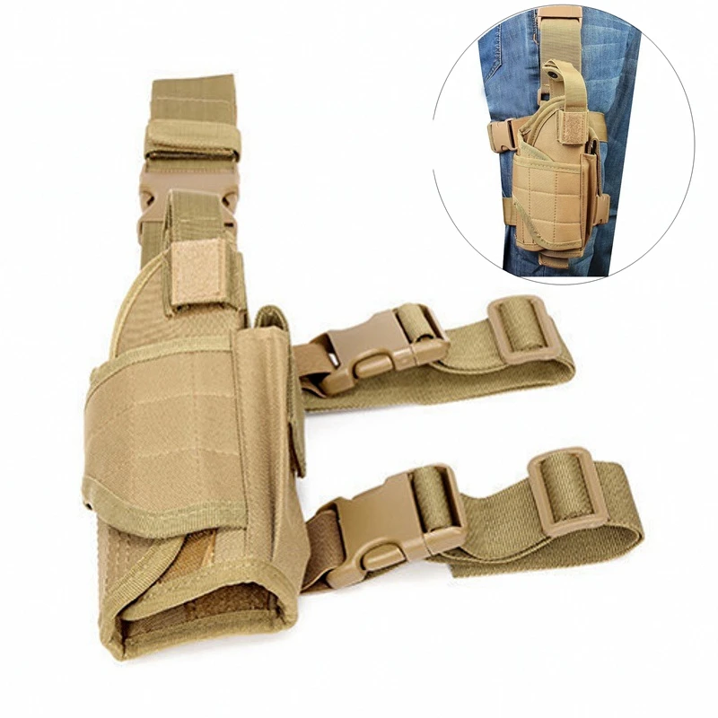 Funda táctica para muslo, diseño envolvente con correa ajustable, generalmente para mano derecha, muslo derecho