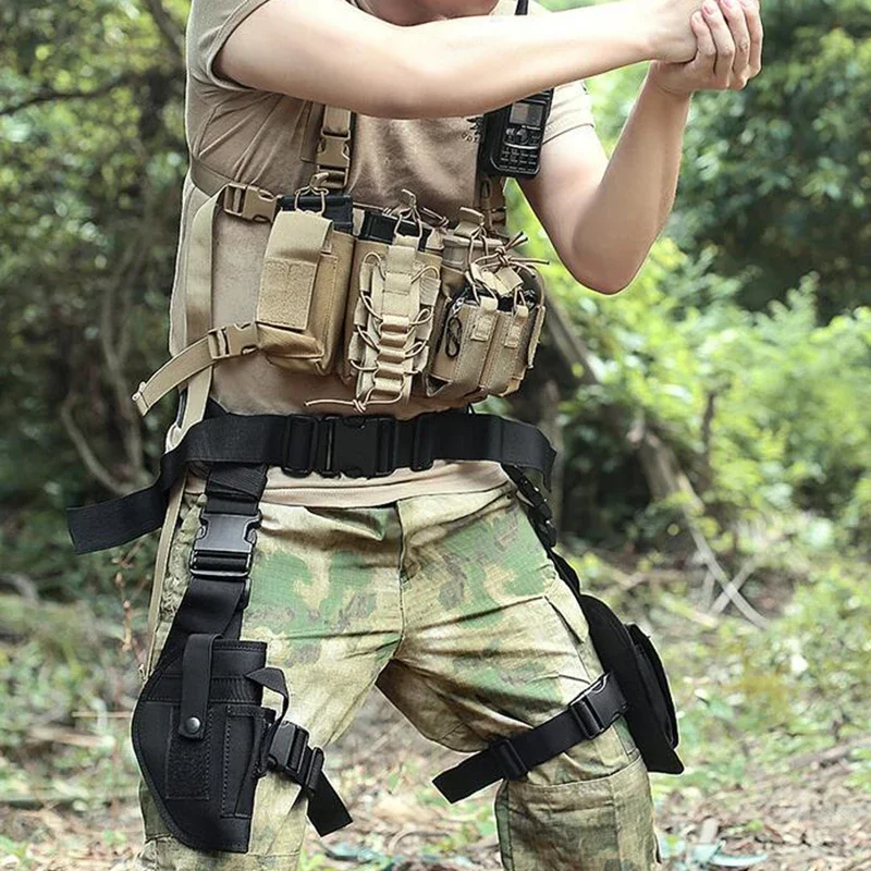 1. Versatility: The combination of tactical leg covers, magazine covers and belts can adapt to different combat environments and mission requirements, and can be loaded with various combat props, such as pistols, magazines, knives, phones, etc.