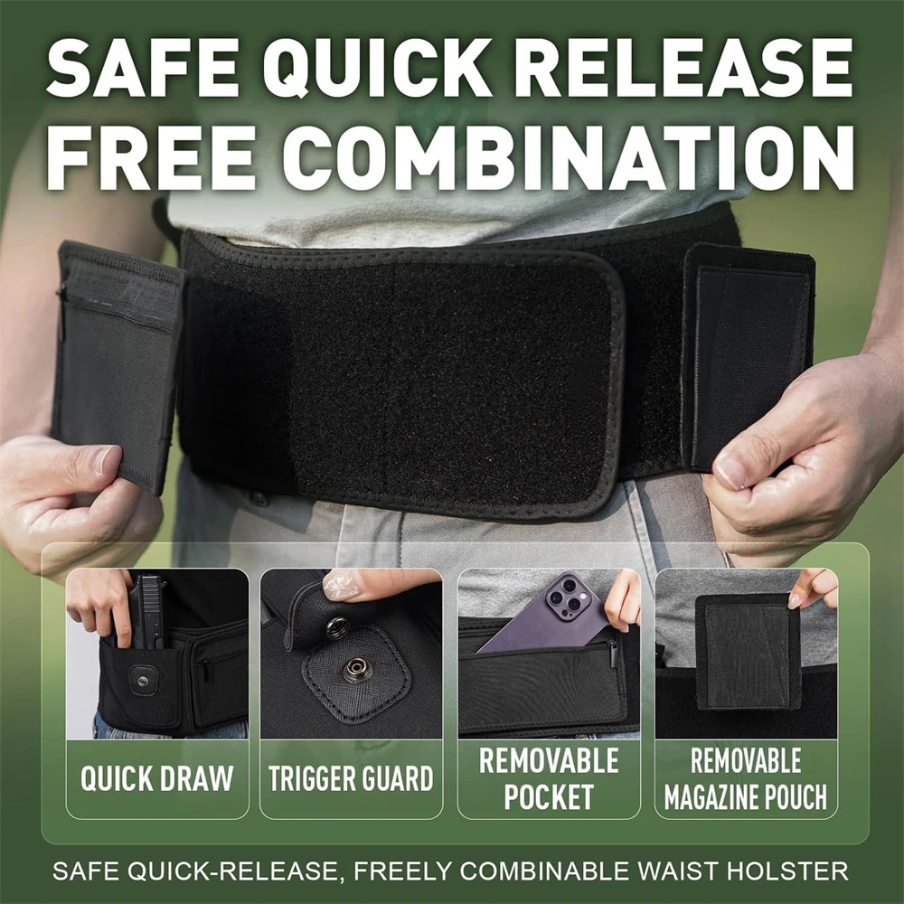 Banda para el vientre, funda para pistola, cinturón de transporte oculto transpirable, funda para pistola, banda para la cintura, soporte para pistola para Glock 19 17 43x Taurus Ruger SIG P365