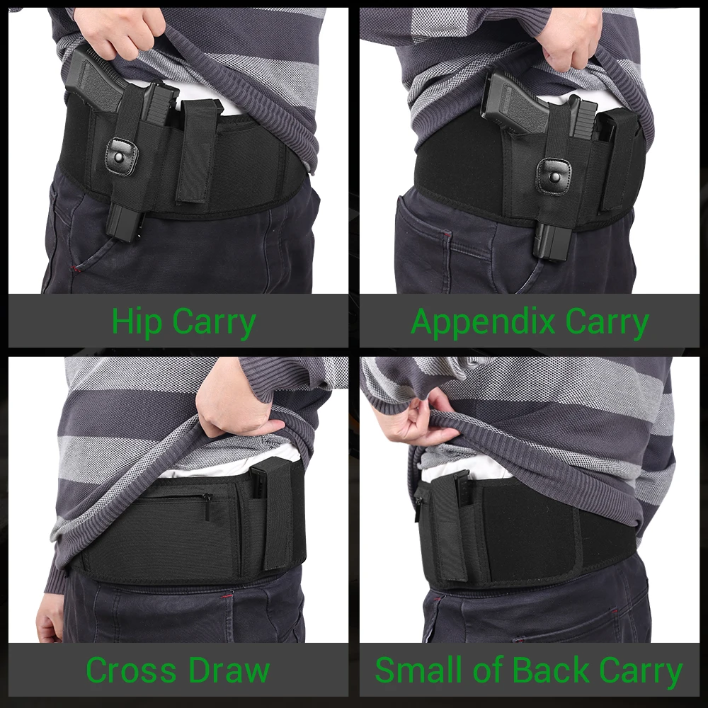 Belly Band Gun Holster Concealed Carry Pistol Holster Pouch with Magazine Bag Waist Band Holster for Glock 19 17 Smith Wesson Taurus