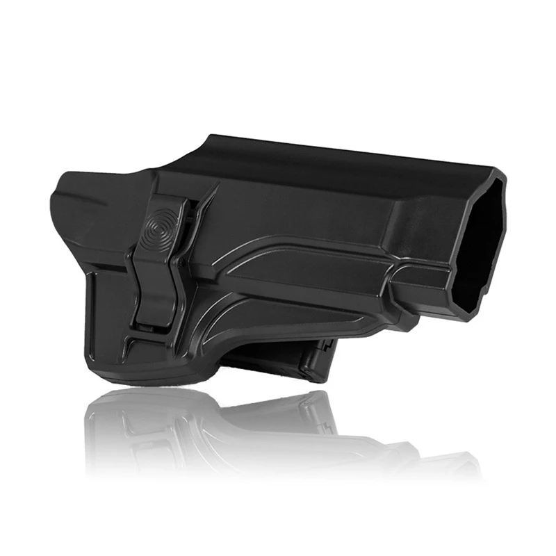 2.Retención de nivel II: el sistema de bloqueo automático retiene la pistola en la funda OWB para garantizar la máxima seguridad, active la liberación presionando el botón con el dedo índice para lograr el acceso a la pistola.
