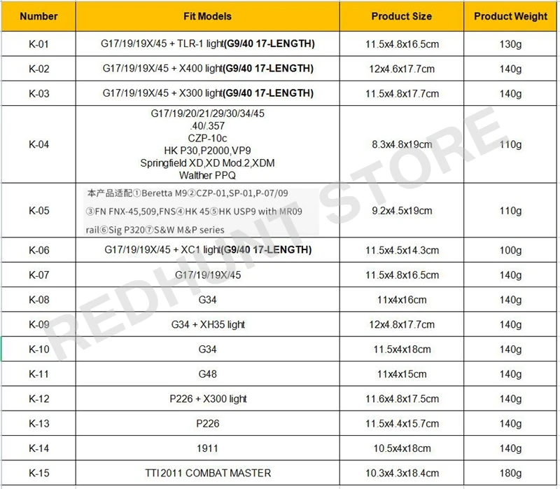 Funda para pistola de caza Kydex, funda ligera para pistola TLR-1 X400 X300 XC1, bolsa para pistola de cintura con rodamiento para G17/19/19X/45/43/43X/20/29