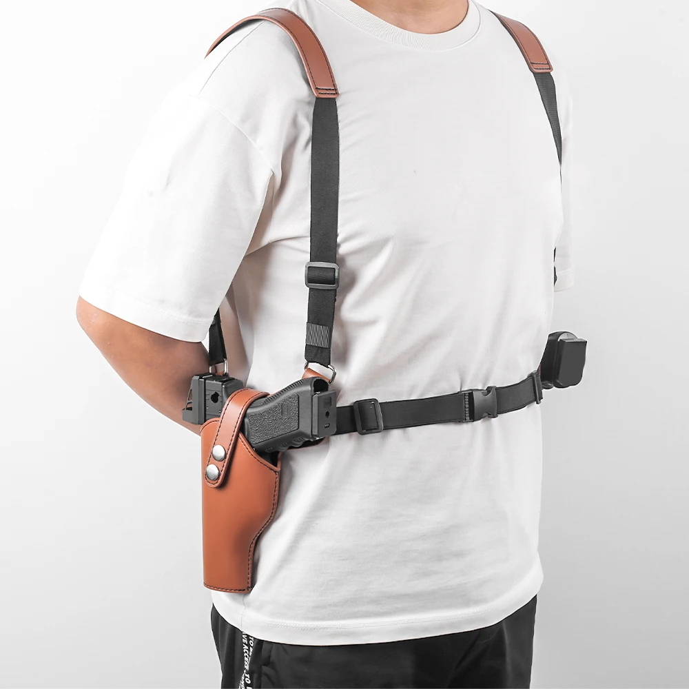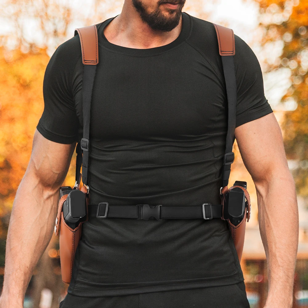 Funda para pistola de doble hombro, funda para pistola de transporte oculta ajustable, funda de cuero PU, funda para pistola, Compatible con 1911 Glock 17/19/22