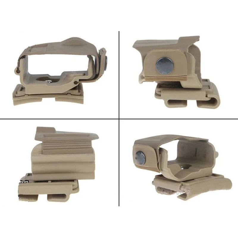 Un juego de velocidad variable (360) y abrazaderas montadas de forma segura en casi cualquier plataforma (cinturón o MOLLE)