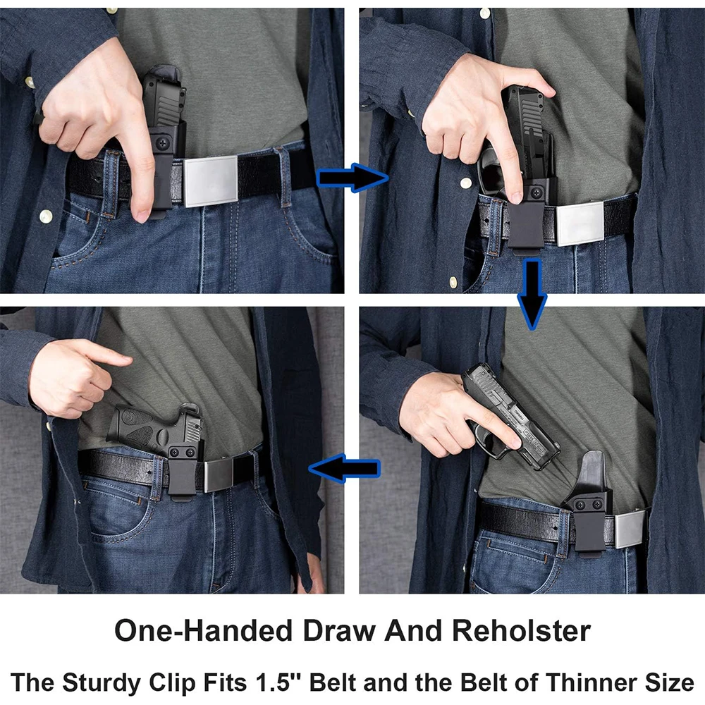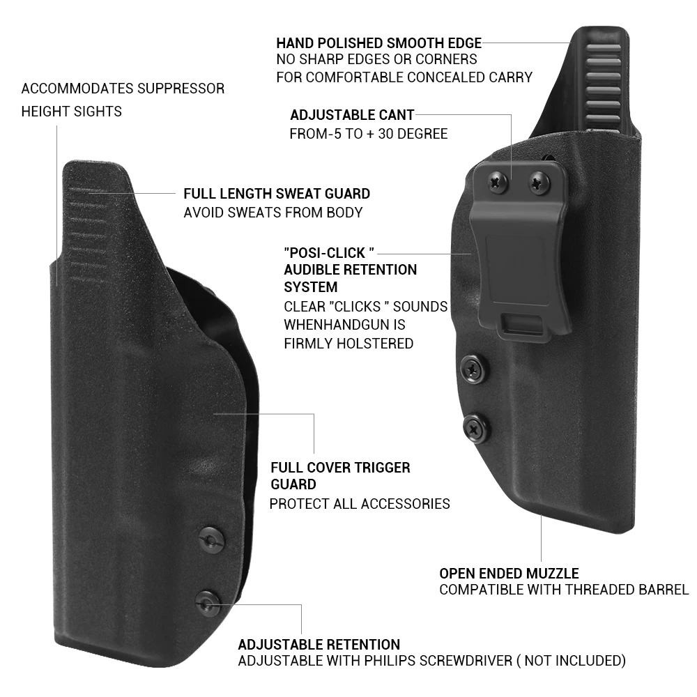 3. 【Comodidad y durabilidad】 La funda IWB tiene funciones antiarañazos y reductoras de fricción para proteger su arma de fuego.Su material es muy estable, sujeta firmemente su arma y su suave estructura interior evita que su querida pistola se raye.