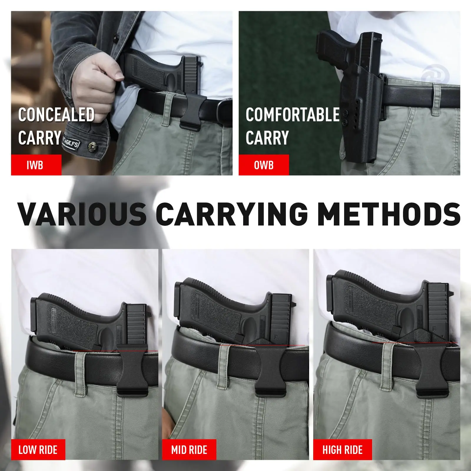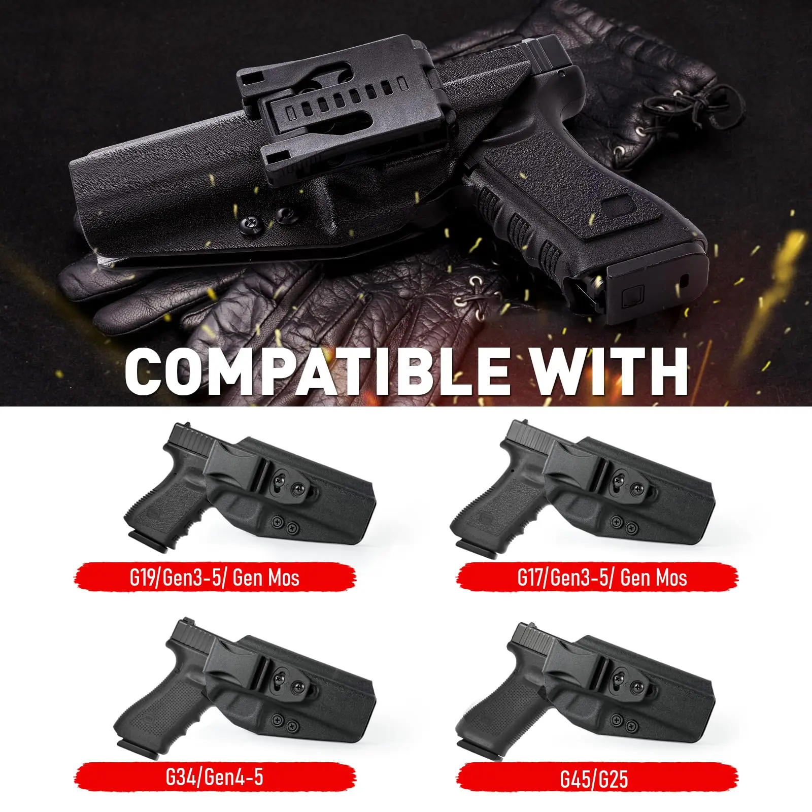 Funda para pistola kydex Compatible con Glock34 IWB y OWB para Glock G34(Gen 4-5,MOS) G17/G19/ G25/G45(Gen3-5) transporte exterior oculto