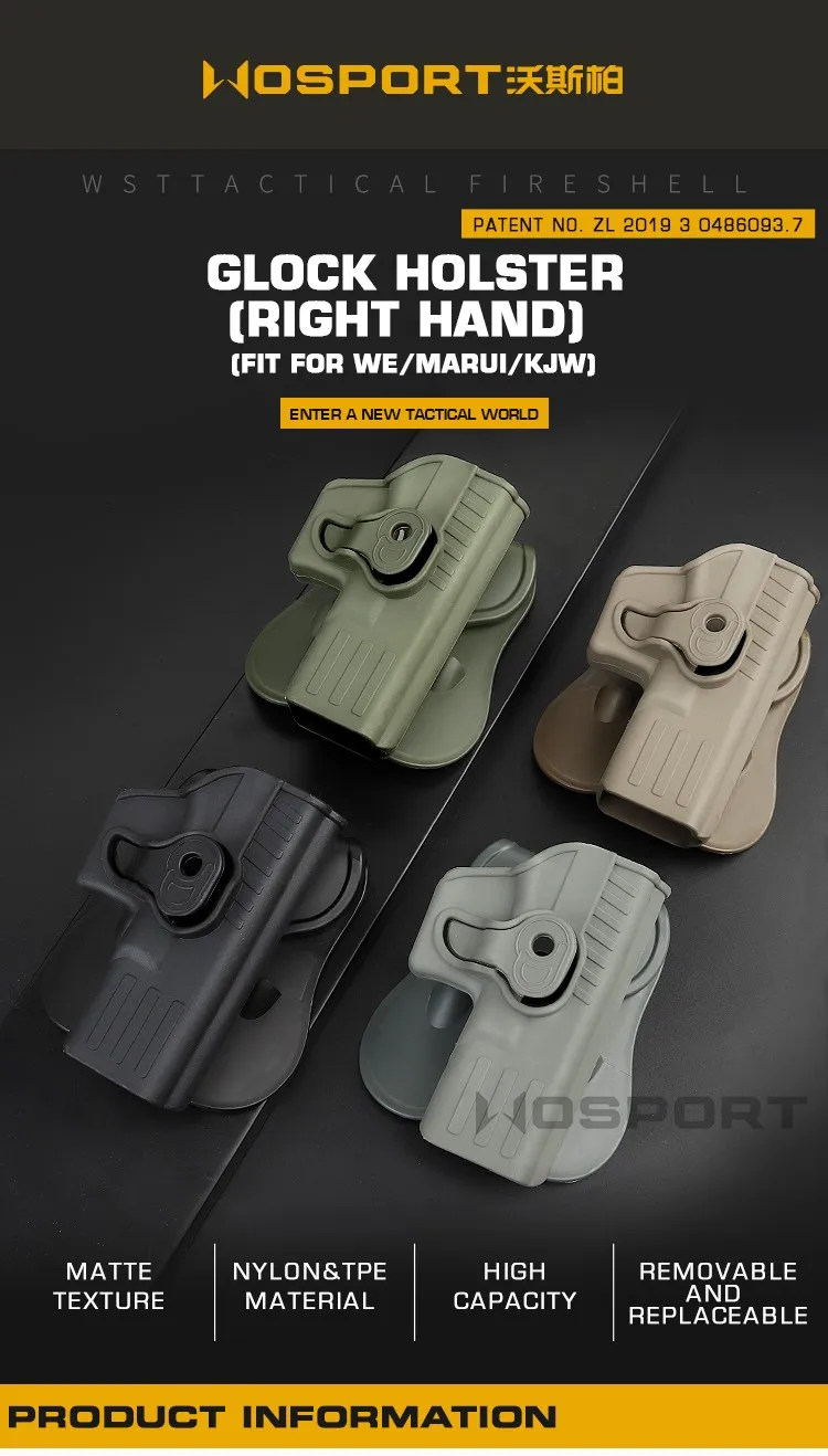 Funda de pistola de mano derecha para TOKYO MARUI KJW GLOCKS, ajustable a 360 grados, funda de PE para pistola de caza táctica, se adapta a cinturón Molle Stystem