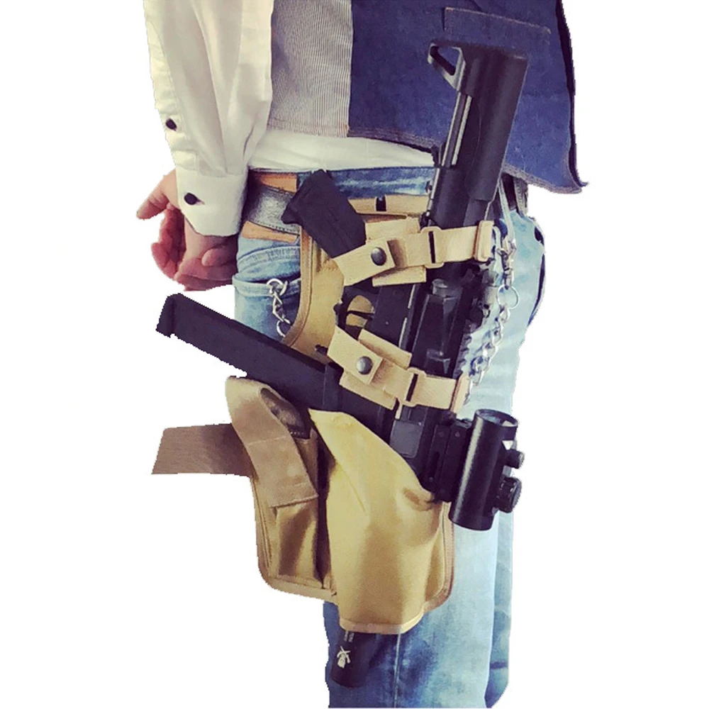 Molle Pistol Holster MP7 Leg Drop Holster with Spare Magazine Pouch Combat Leg Drop Bag