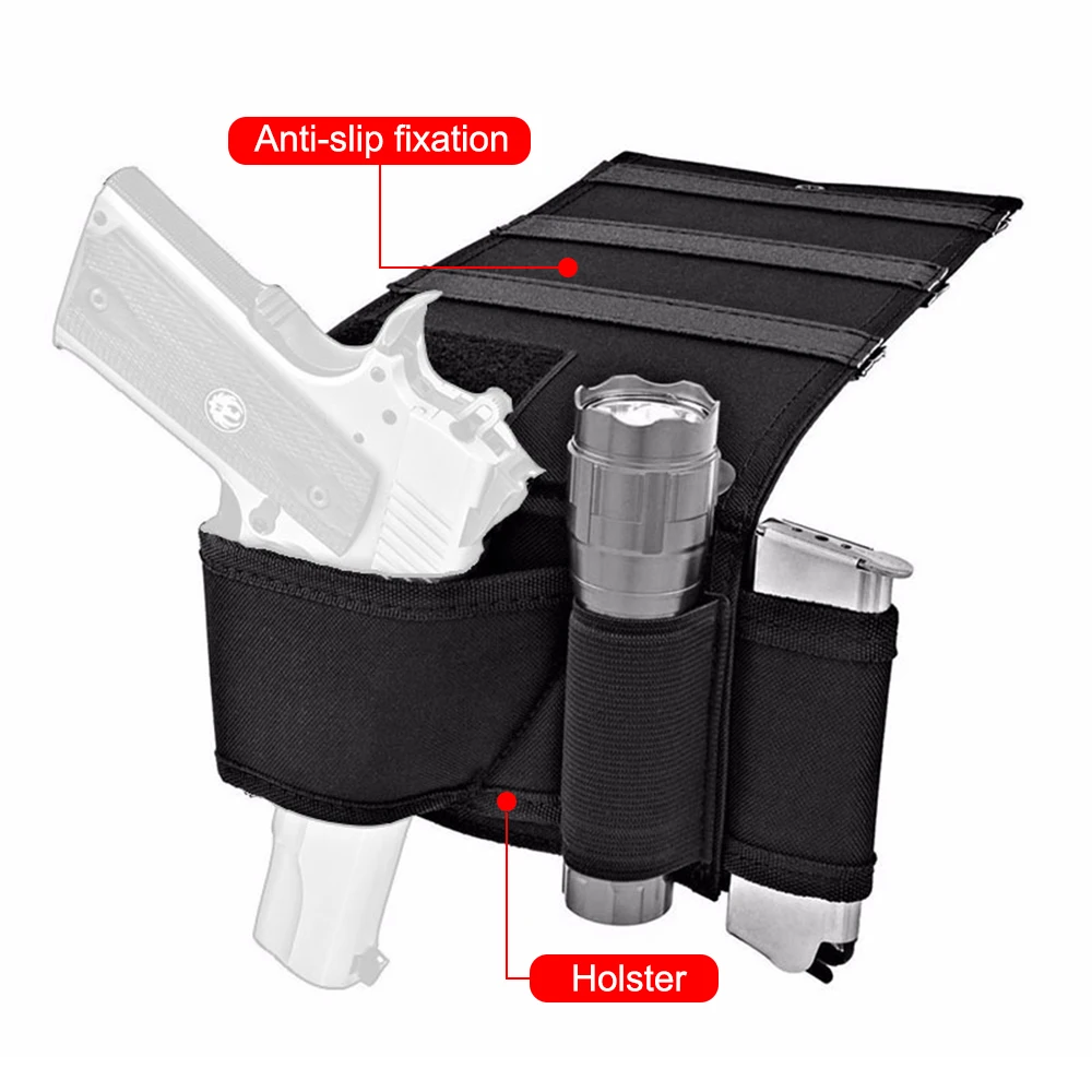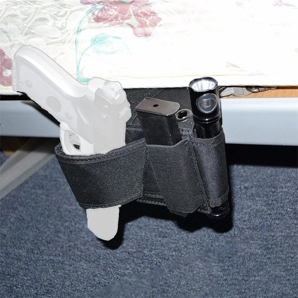 Funda para pistola de cabecera, funda para pistola lateral de cama táctica debajo del colchón, funda para pistola con soporte para linterna y soporte para asiento de coche