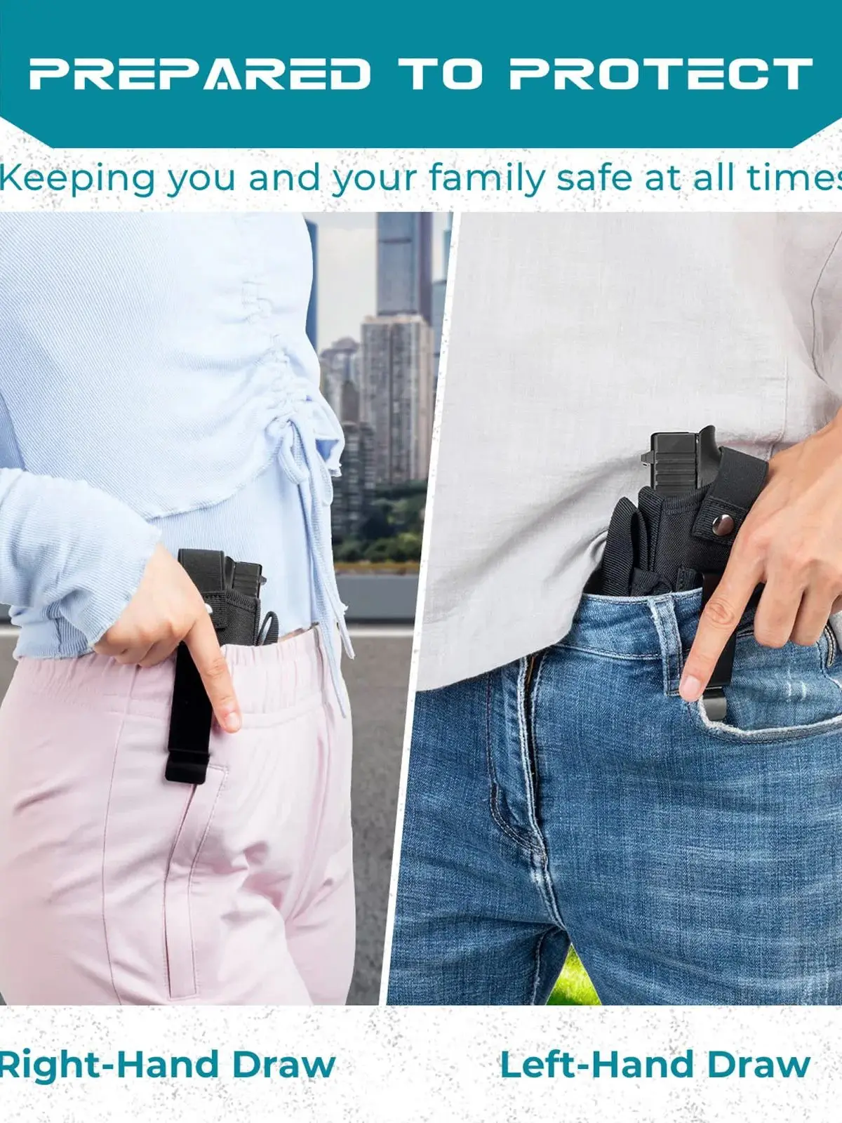 【Manestro izquierdo y derecho】 La cintura exterior o la parte interior de la cintura Las fundas tácticas para pistola están hechas para la mano derecha y la izquierda.Hay un lugar para el clip a cada lado.Dentro de la cintura, fuera de la cintura, en la cadera, detrás de la cadera, dibujo cruzado, etc.Puedes usarlo según tus hábitos.Tenga en cuenta que las pistolas con accesorios para láser o linterna no encajarán.