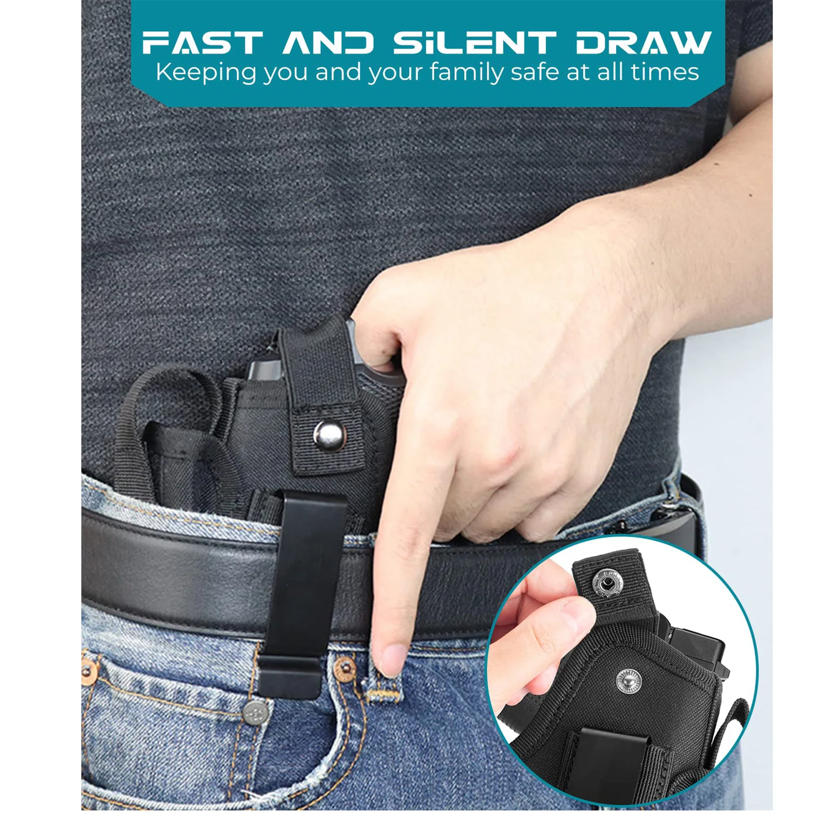 Excelente sigilidad: la funda de la pistola del interior del pantalón es lo suficientemente cómoda para llevarla oculta todos los días y fácil de sacar. Es fácil de esconder cuando llevas camisetas, chaquetas, abrigos, trajes. También se puede utilizar como funda de almacenamiento cuando la coloca en una bolsa, automóvil, gabinete o en la pared. También es ideal para Airsoft.