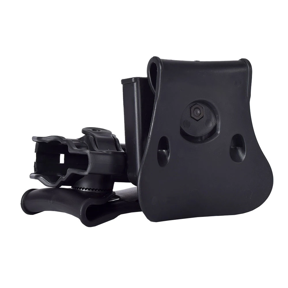 Comes with both pistol and double magazine holster.Comfortable contoured fit.Retention with zero time to disengageCustom fit for Beretta M9 Glock 17 19 23 M1911Light weight and durable.Allow faster draw and easy reholstering