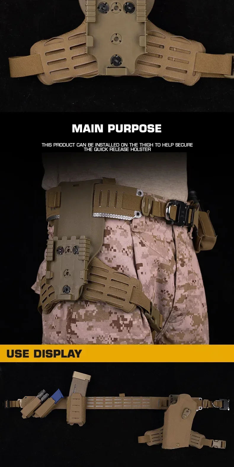 ElAlmohadilla lateral para patadasestá diseñado para ser compatible con fundas y adaptadores que utilizan el3 agujerosSistema de montaje Safariland, lo que lo hace perfecto paraSafariland Low Ride UBL o True North Concepts MHA.Esta almohadilla cuenta con espuma Close Cell y malla espaciadora para amortiguación y comodidad, e incluye dos columnas de ranuras MOLLE en cada "ala" para una mayor utilidad.Además, viene con una correa para muslo de 1" equipada con una hebilla de liberación lateral duradera y una sección elástica para mayor elasticidad y mejor ajuste.