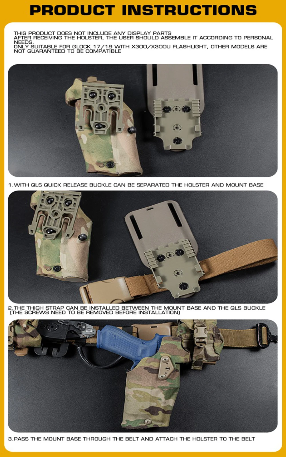 Producto adecuado para: Glock 17/19 con linterna X300/X300U, otros modelos no están garantizados para ser compatibles
