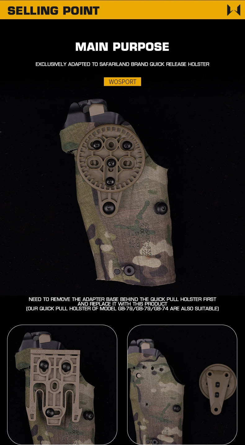 Adaptador de Base de nailon de 360 grados para soporte SAFARILAND, accesorio de soporte de ajuste para accesorios de cazaInformación del producto:
