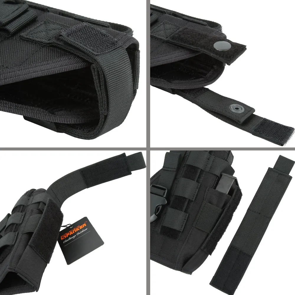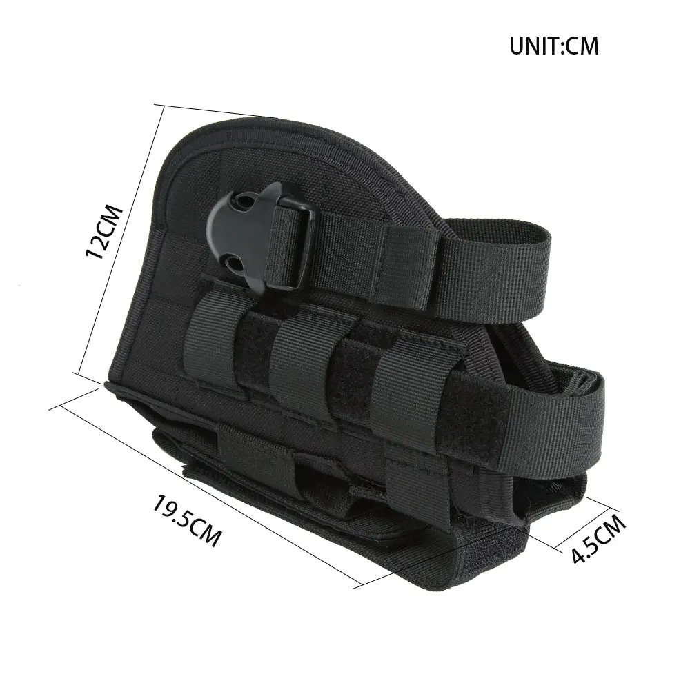 Molle System: With MOLLE system which allow you to attach to all MOLLE webbing like vest/ belt/ Not included drop Leg Platform