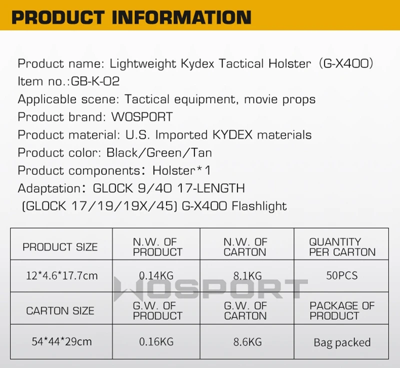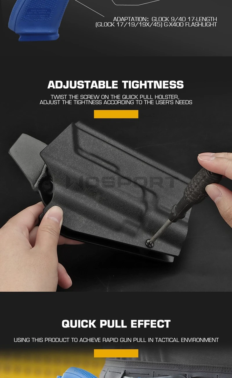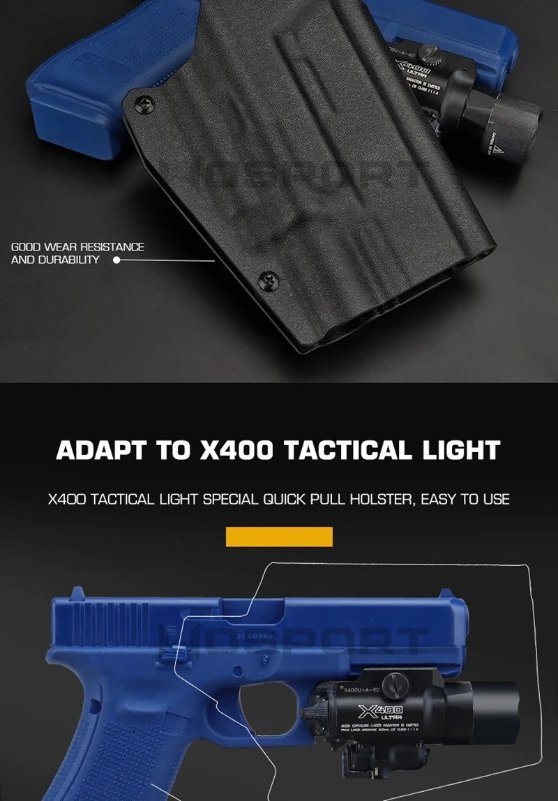 Funda de pistola táctica kydex, funda de linterna de G-X400, bolsa de caza Universal Airsoft para Glock 17 19 19X 45