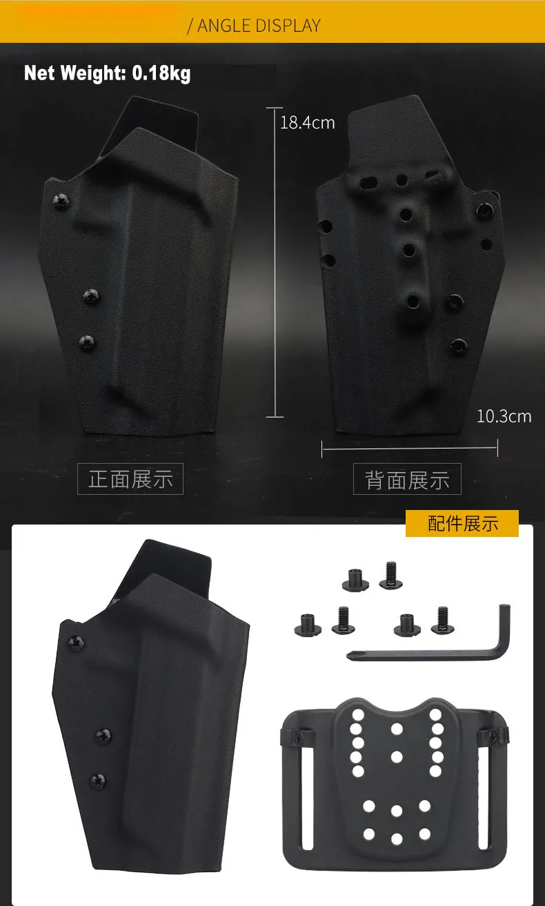 Adaptación: Maestro de combate TTI 2011Peso: 0,15 kgMaterial del producto: Materiales KYDEX importados de EE. UU.