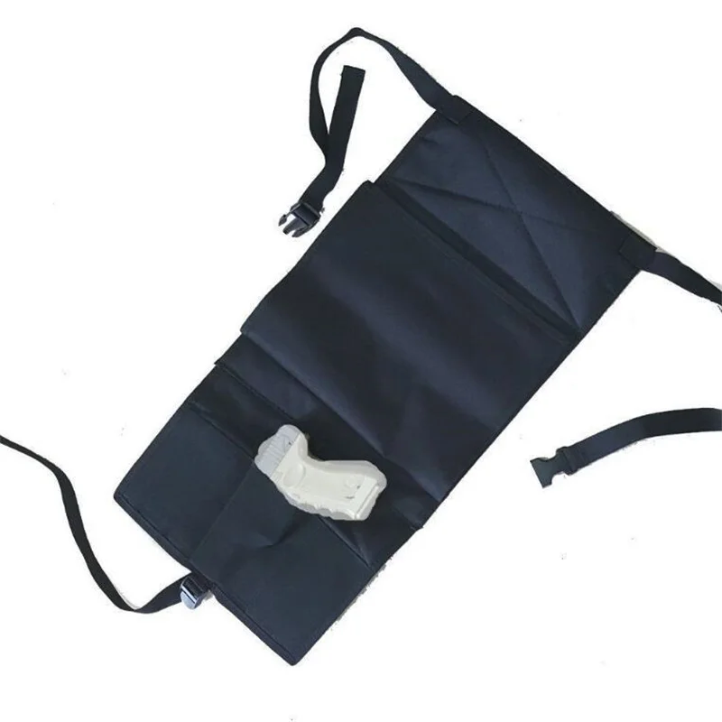 Funda de pistola táctica ajustable para asiento de coche con bolsa de almacenamiento oculta de repuesto para la mayoría de los coches Glock Ruger LCP, M & P, Sig Sauer, Ruger, Kahr, Beretta, 1911, etc.