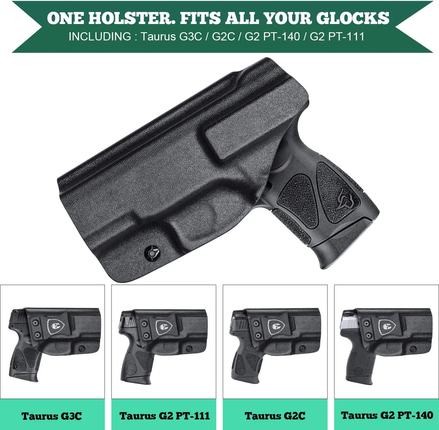 Funda Taurus G3C, KYDEX y diseño de EE. UU.: personalizada para pistola Taurus G3C / G2C / Millennium PT111 G2 / PT140 de 9 mm /.40, KYEDEX de EE. UU. hecha cómoda y duradera.Funda de transporte interior oculta en la cintura, preserva su pistola Taurus G3C/G2C en perfectas condiciones.(Nota: no encaja con accesorios láser/luz)