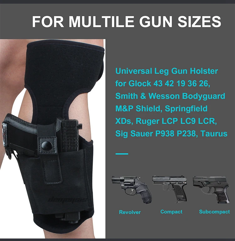 ● Se adapta a todos los tamaños de piernas, para una amplia variedad de pistolas o pistolas, se ajusta a pistolas compactas, subcompactas o de tamaño completo.