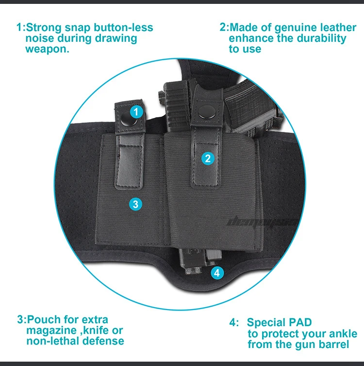 ● Gun holsterallow you can walk, jump, work out, and even run with this ankle holster's double strap design without the slightest slip down your leg