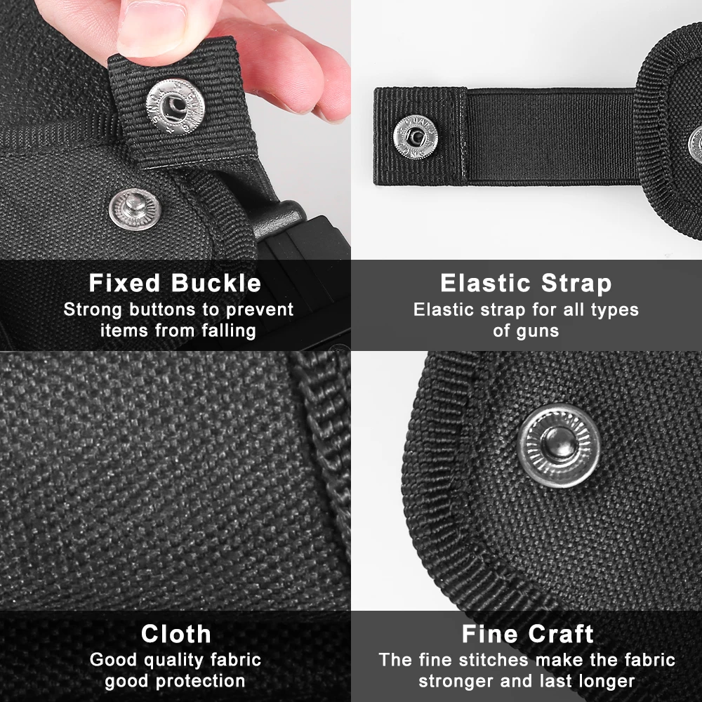Hecho de nailon 1000D duradero y resistente.Nuestra funda de 9 mm para hombre cuenta con un botón chapado resistente y un cordón elástico de TPU.El clip de metal de 2,3" tiene un lugar en la cintura exterior o interior que puede ajustar según sus preferencias y se ajusta a un cinturón de hasta 2 pulgadas de ancho.Buena resistencia al desgaste y al agua, lo que hace que esta funda de pistola táctica funcione mejor en el campo.