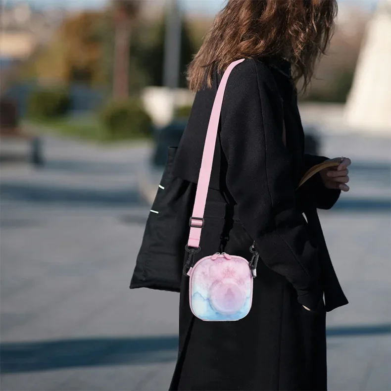 Diseño práctico: correa de muñeca desmontable para poner y quitar fácilmente la funda de la impresora Instax.Puedes sostenerlo en tu mano, colgarlo en tu bolso o guardarlo en tu mochila.Puedes imprimir fotos con tus amigos en cualquier momento y en cualquier lugar para compartir tu buen rato.