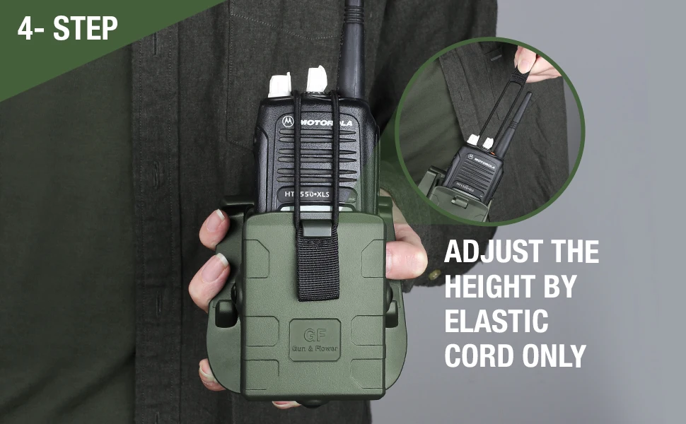 【Colocación segura】El cordón elástico forma un sistema cerrado, protegiendo su walkie-talkie de pérdidas o daños, manteniéndolo firmemente en su lugar.