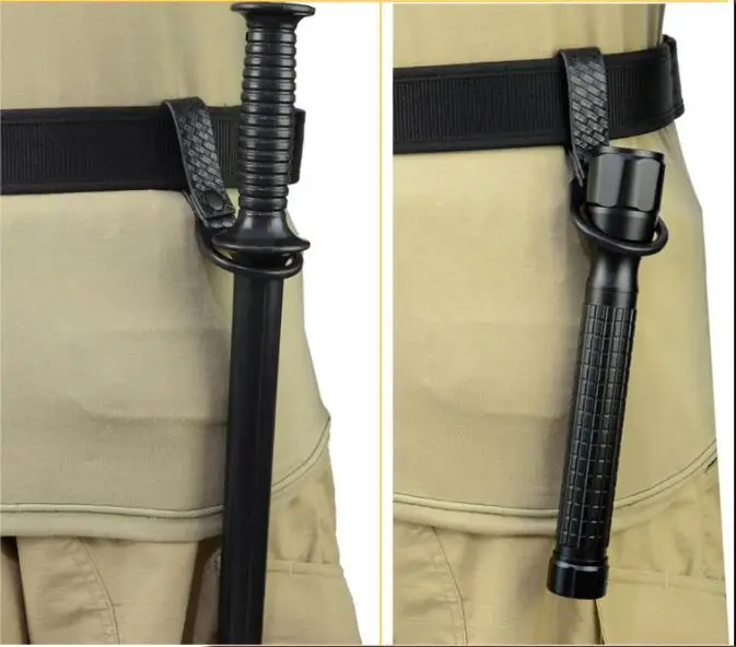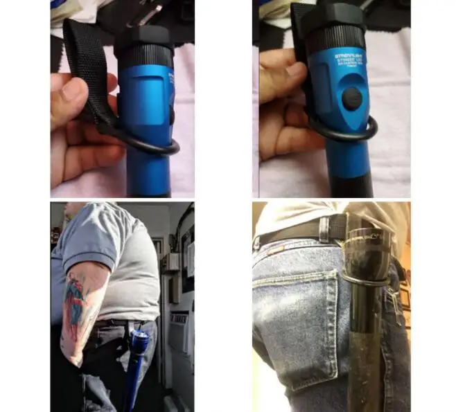 Colóquelo en el cinturón y sujete el anillo para Mag Lite y otras luces de flash de celda D o C.