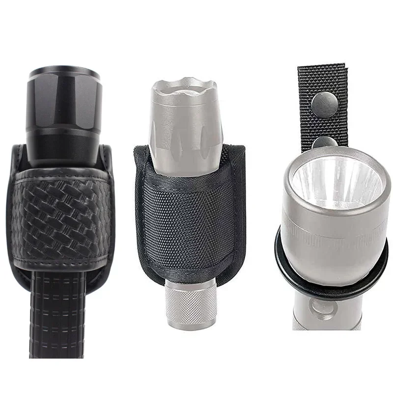 Colóquelo en el cinturón y sujete el anillo para Mag Lite y otras luces de flash de celda D o C.
