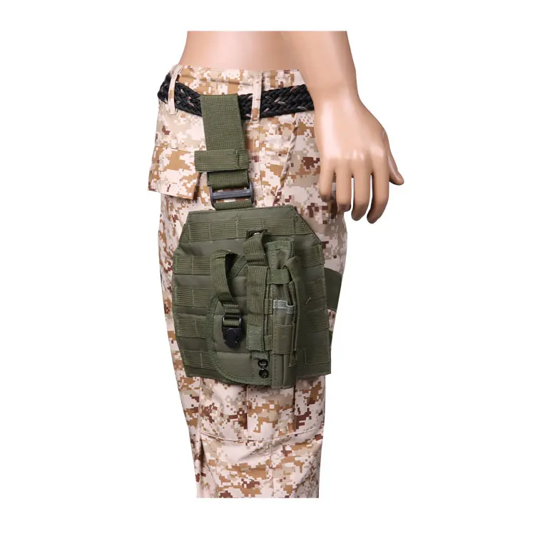 La funda de pistola Molle se puede usar sola en cualquier chaleco o cinturón Molle.