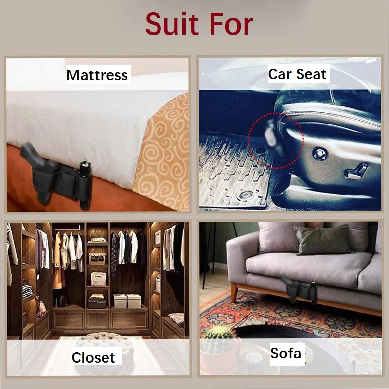 UNIVERSAL:Esta funda para pistola de noche está hecha para instalarse debajo de todas las colchones y también se puede usar en sillas de oficina, escritorios, mesas, sofás, etc.El ojal superior le permite colgarlo dentro del armario o montarlo en la pared como una funda para colgar.Como funda para asiento de vehículo, es compatible con la mayoría de los automóviles, camiones y furgonetas.