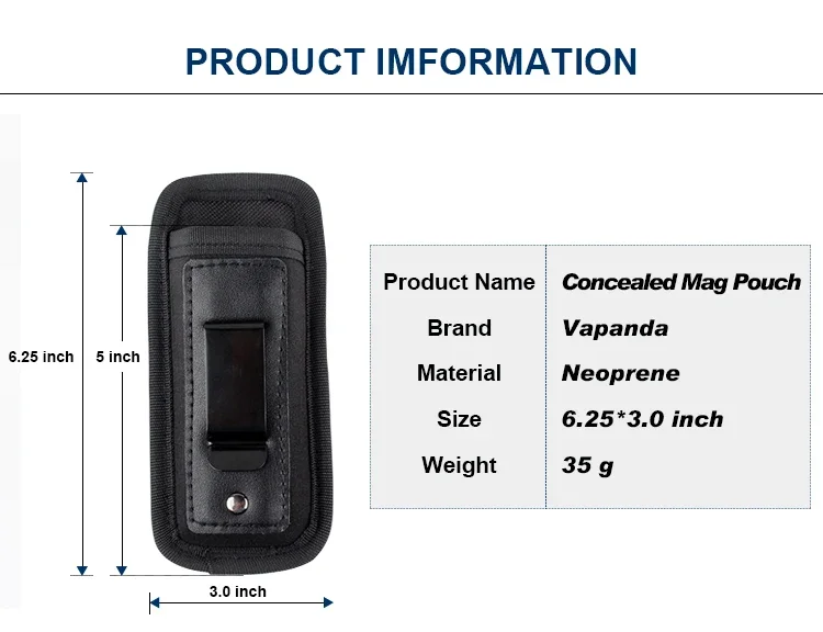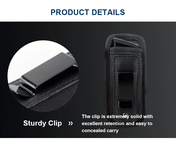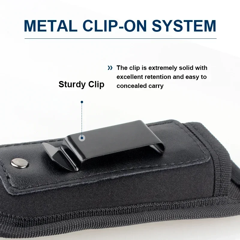CLIP CONCEALADO:Esta bolsa para cargador se conecta a su cinturón mediante un simple sistema de clip de metal.El clip es extremadamente sólido con excelente retención y fácil de ocultar.