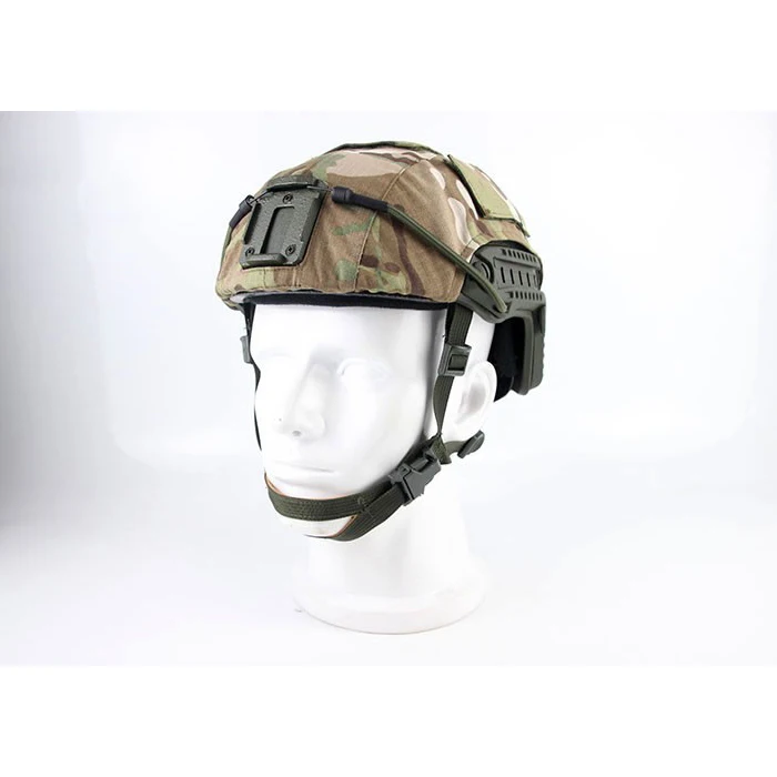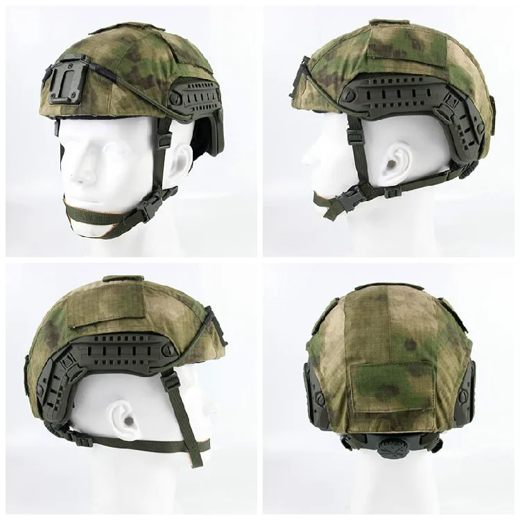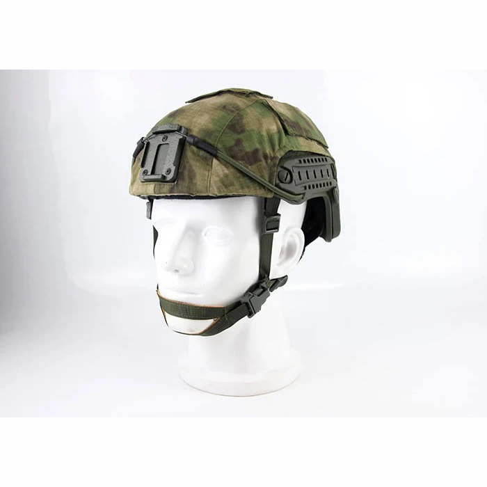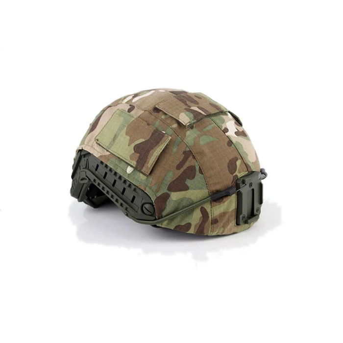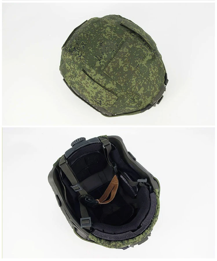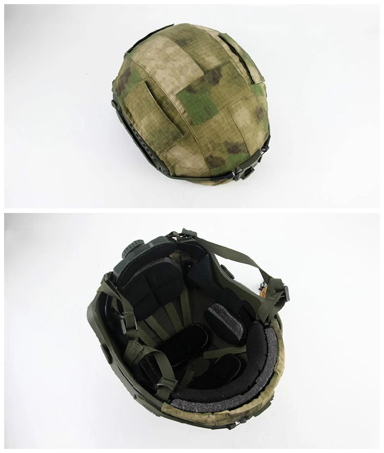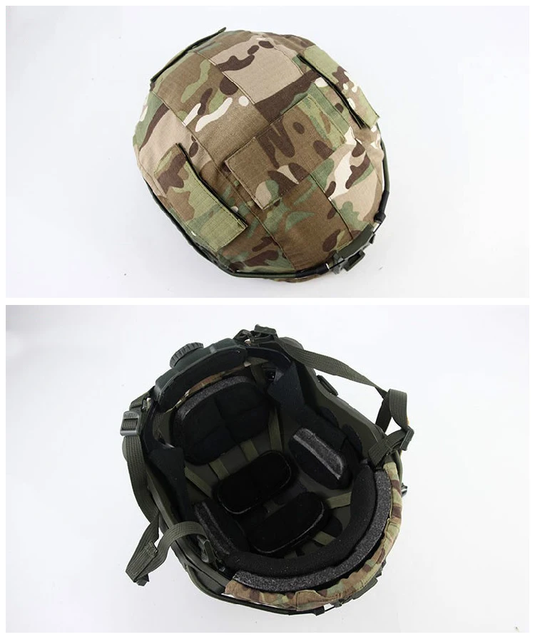La tela del casco viene con una cubierta de gancho de camuflaje para un camuflaje adhesivo cuando no está en uso.