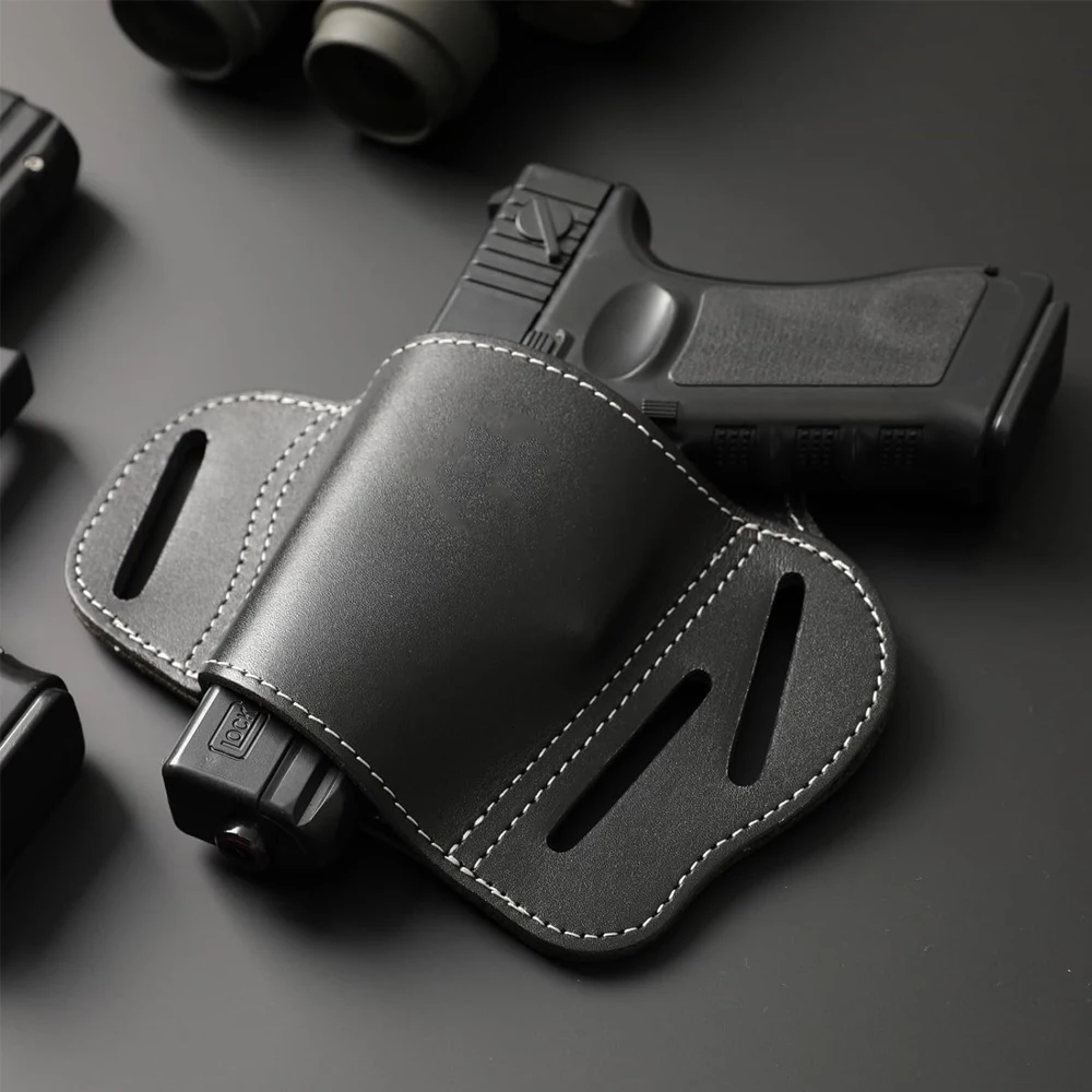 Funda táctica para cinturón de pistola de cuero OWB, funda para panqueques de transporte oculta con 3 ranuras para Colt 1911 Glock Sig Sauer Remington Ruger y más