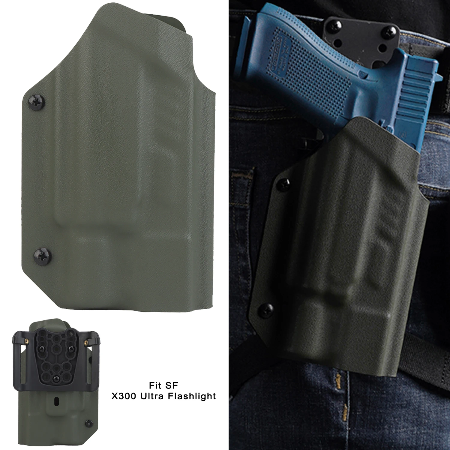 Funda táctica Kydex ligera para 9mm/.40 17 19X 22 23 34 35 45 con linterna X300 U