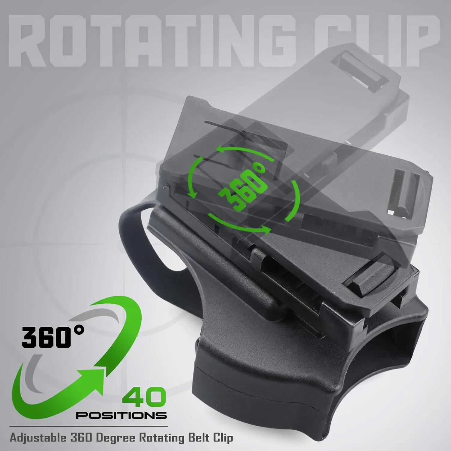 2. 【Diseño adaptable】Equipado con un nuevo 360° Clip giratorio para cinturón en la parte posterior.El soporte para esposas se adapta a cinturones normales de 1,5"-2", cinturones tácticos y chalecos Molle de una amplia gama de aplicaciones adecuadas para su uso en diferentes entornos.El 360° La rotación del clip trasero permite mantener el estuche de las esposas en un ángulo conveniente para retirar rápidamente las esposas, lo que facilita su uso en escenarios de servicio y patrulla.
