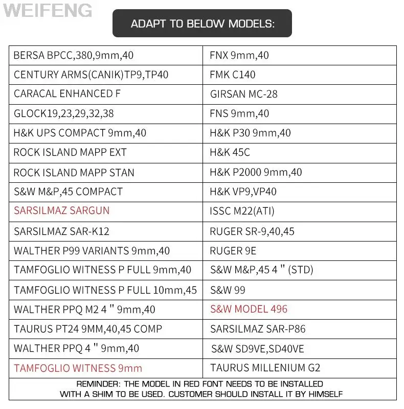 El paquete incluye: 1 * funda de pistola/1 * juego QLS