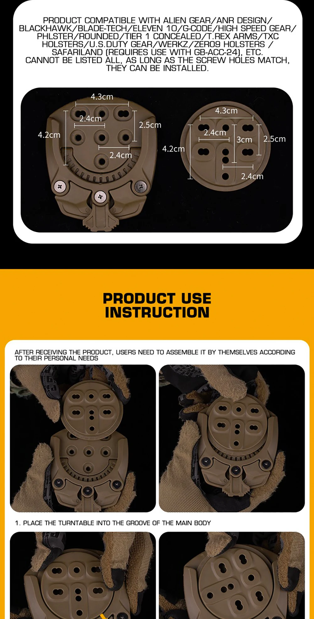 Funda táctica giratoria de 360 grados, adaptador de montaje de pistola de caza, accesorios de funda de tiro Modular