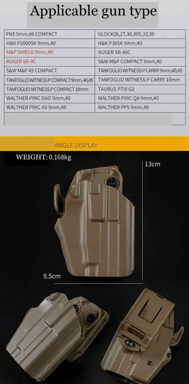 Funda táctica GL / RUGER / S & W / HK/WALTHER PPQ P99 / FNX HOLSTER, funda para pistola, soporte para mano derecha, equipo de caza
