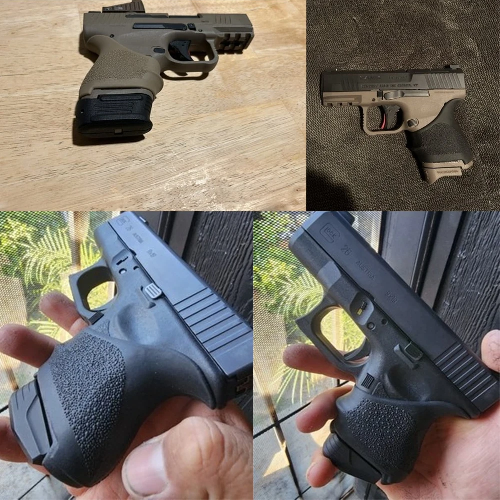 Ajuste de precisión para marco estándar para modelos GLOCK 26, 27.Esta empuñadura también encajará y funcionará bien en las siguientes armas de fuego, aunque no están diseñadas específicamente para un ajuste de precisión (los modelos de marco más grandes requerirán un esfuerzo extenuante para instalar el agarre): Para GLOCK 26: Gen 5 (el marco no tiene ranuras para los dedos), Para GLOCK 30, 31, 32, 33, 36, Heckler y Koch USP Compact, SIG SAUER P224, P320 Nitron Subcompact, Smith y Wesson M&P 9C, Walther PPQ SC.- Ajuste de precisión para marco estándar Para modelos GLOCK 26, 27