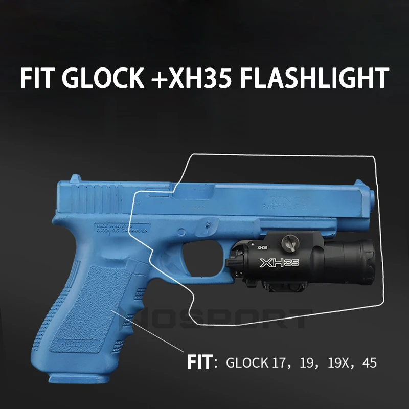 1.Esta funda está diseñada para Glock 17 19 19x 45 y adaptarse con linterna XH35