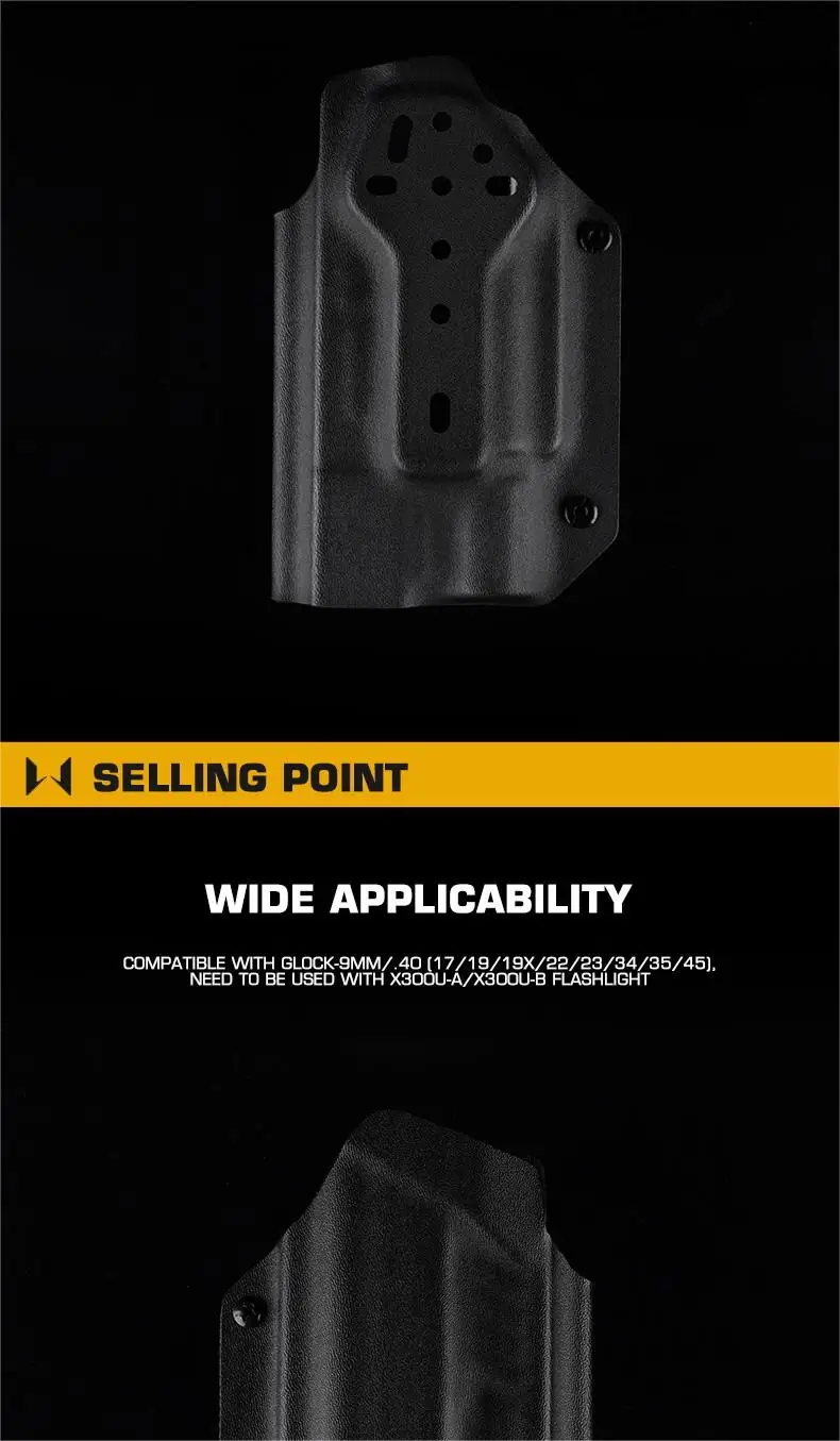 ¡De primera! Se ajusta perfectamente a mi Glock 47 y a mi P80 con Surefire X300U y X300UB.