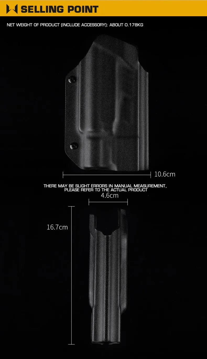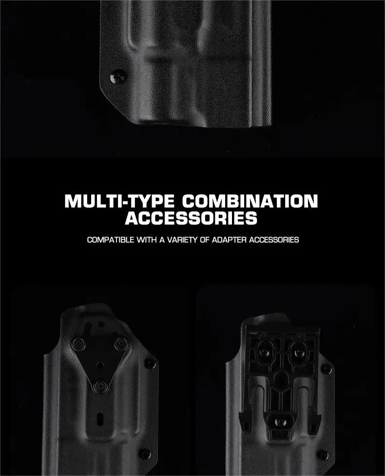 Buen producto para usar en el taller para extracción rápida sin atascos, accesorio de cinturón estándar pero modificable con clip de tres puntos para fundas intercambiables. No es muy preciso al sostener, pero considerando que es multiusos, puede hacer su trabajo. Montado para Glock 19X, es estable y preciso.
