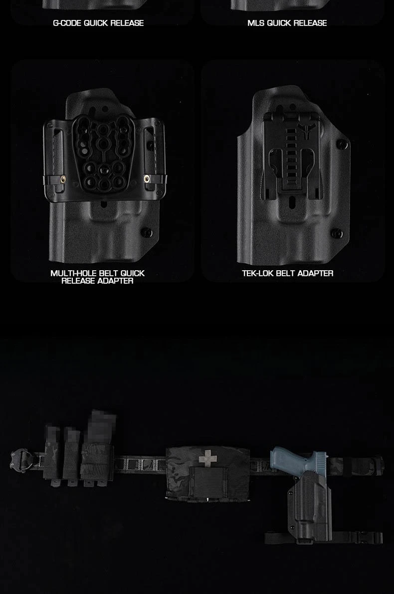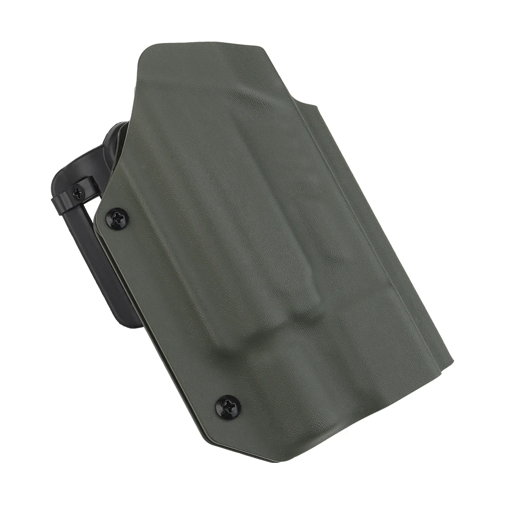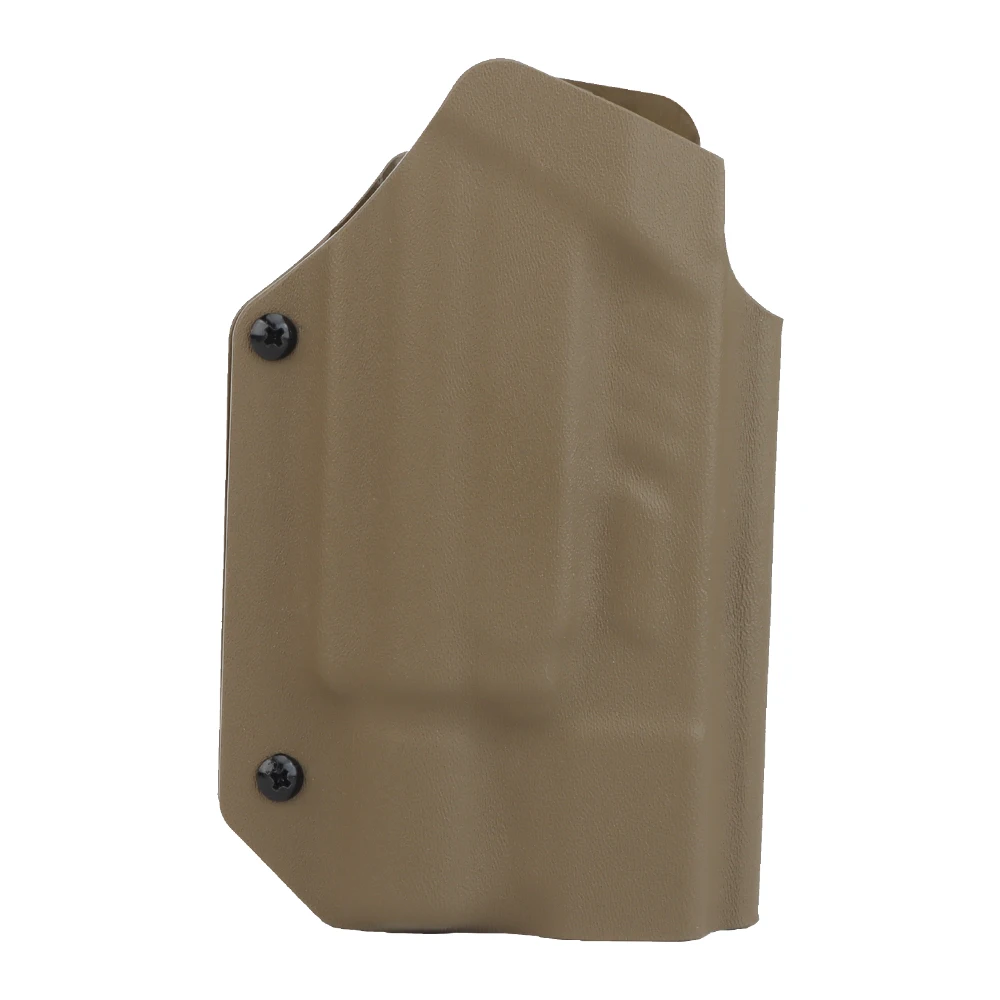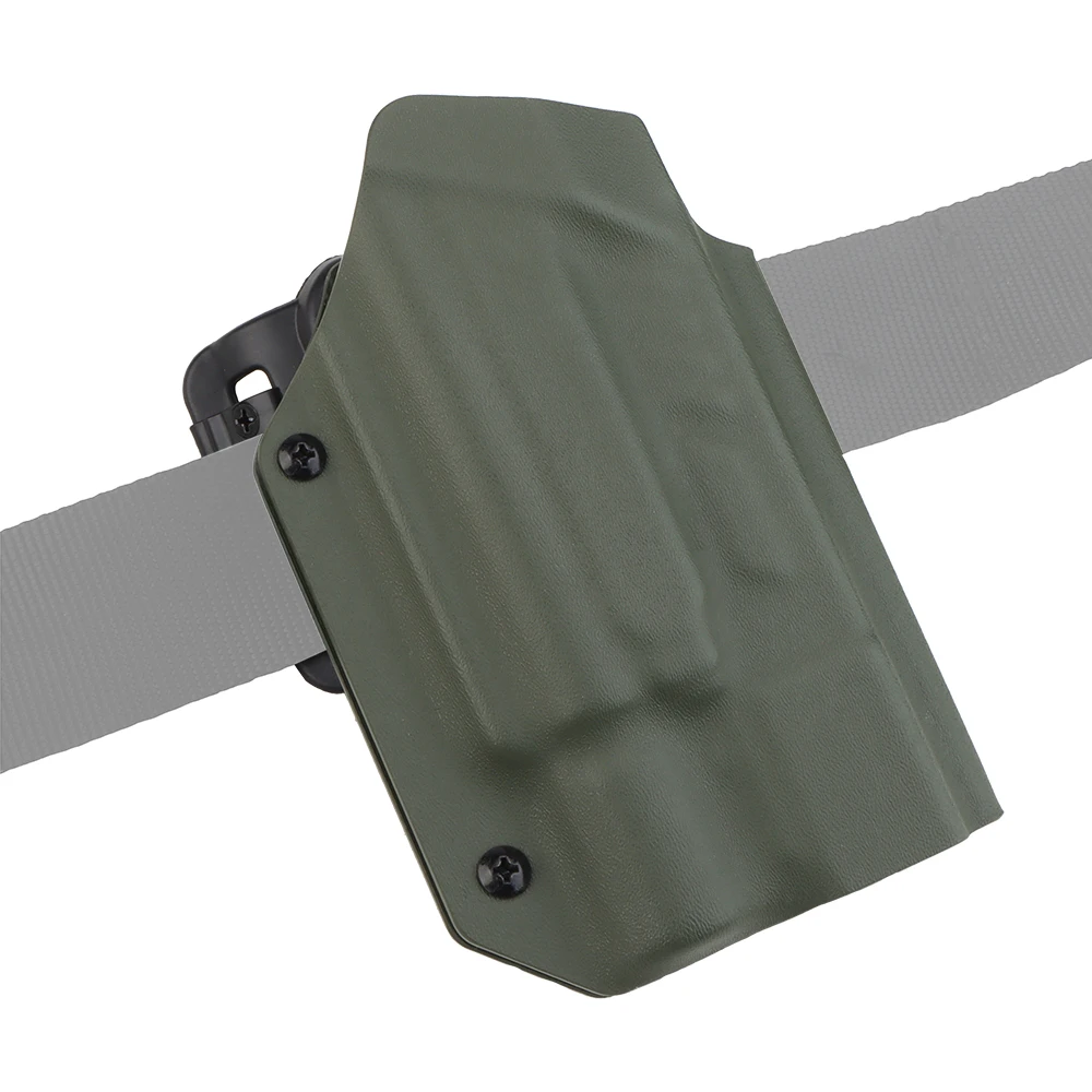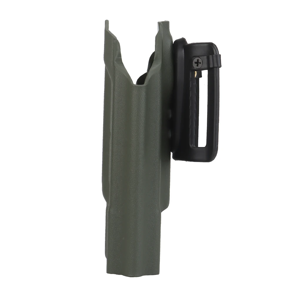 PRODUCT NAME: LIGHTWEIGHT KYDEX TACTICAL HOLSTER (G) ITEM NO.:GB-K-18 APPLICABLE SCENE:TACTICAL EQUIPMENT,MOVIE PROPS PRODUCT MATERIAL:U.S.KYDEX PRODUCT ADAPTATION:GLOCK9MM/.4O[17/19/19X/22/23/34/35/45]. NEED TO BE USED WITH X3OOU-A/X3OOU-B FLASHLIGHT COLOR:BLACK,GREEN,TAN SIZE:30X18X6CM WEIGHT:200G PACKAGE: 1x Holster or 1 x Holster with QLS kits (When you make a order of it, please choose the correct options)